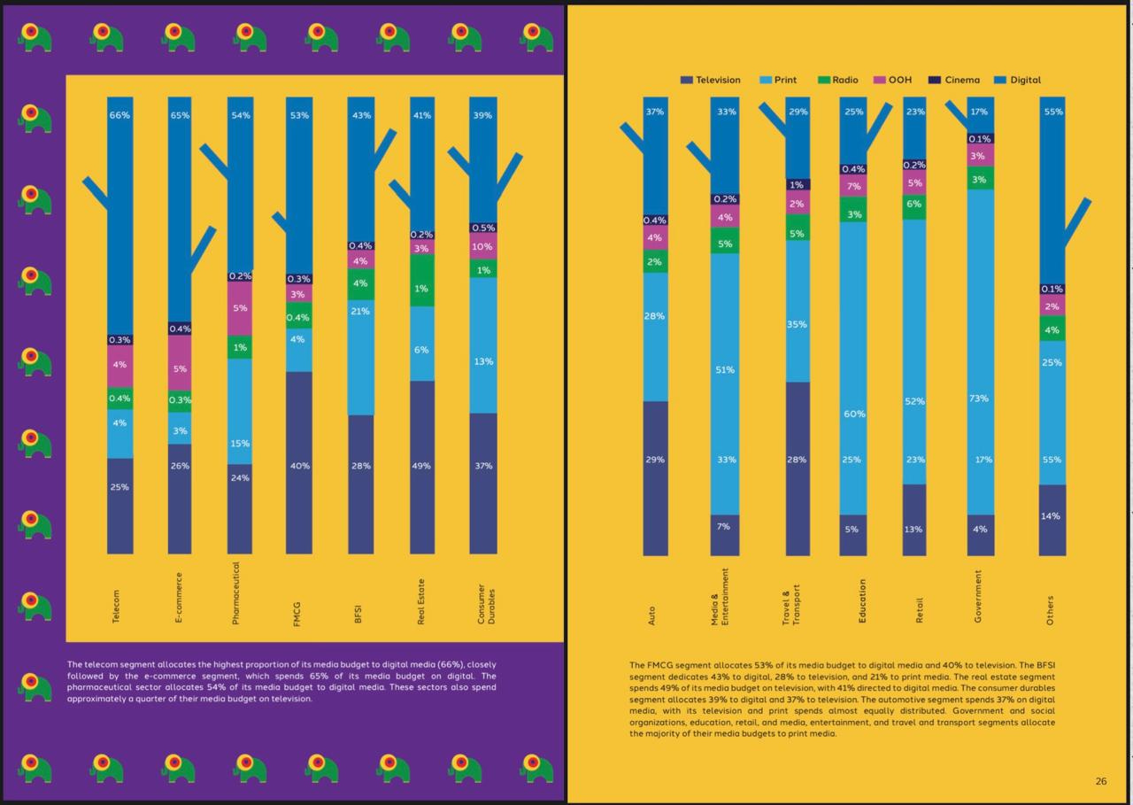buying. It allocates 53% of its media budget to digital media and 40% to television.The telecom segment allocates the highest proportion of its media budget to digital media (66%), closely followed by the e-commerce segment, which spends 65% of its media budget on digital.