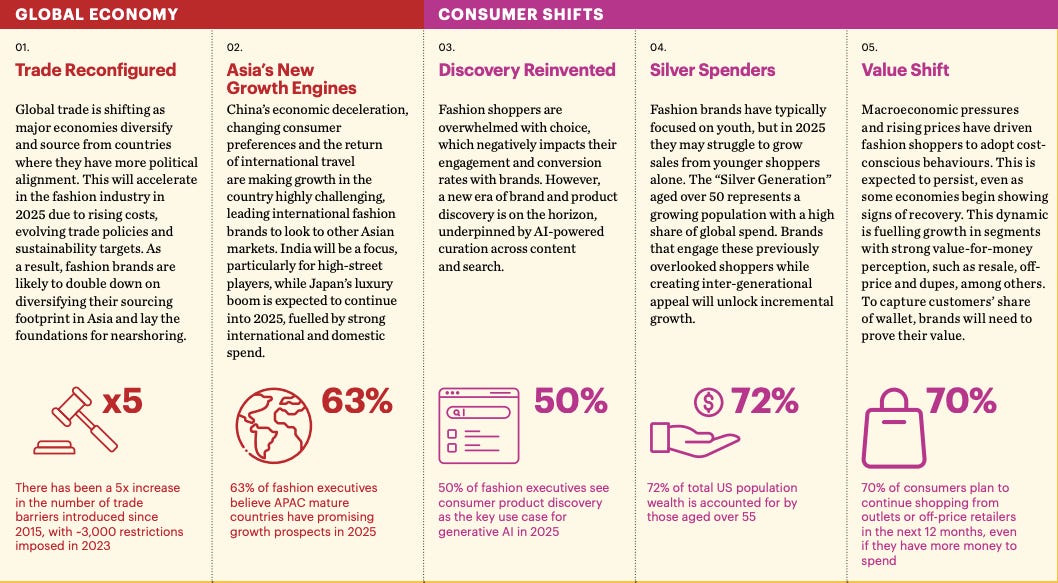Fashion executives have a positive outlook for other Asian countries, particularly India and Japan as reported in ‘The State of Fashion 2025’ from McKinsey.