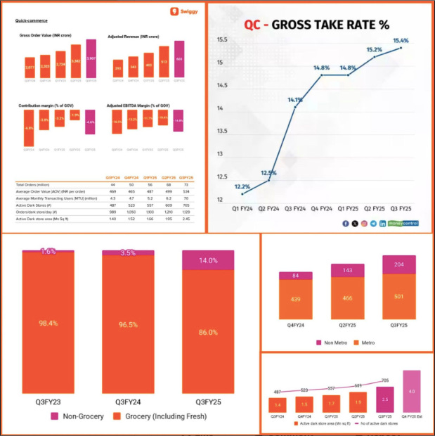 Blinkit & Swiggy Q3'25 Performance Some common themes, for their quick commerce verticals which both, Blinkit & Instamart, are looking to drive harder were that -